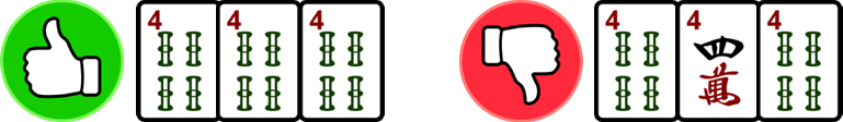 Patterns are created with combinations of blocks that add up to 14 total tiles. There are 4 types of patterns you can use for a winning hand: